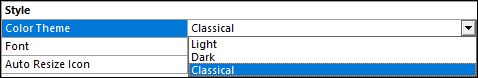 Using the Options dialog preferences of the Style category of the UI Options group, you can change the color theme (Dark and Light) of the interface.