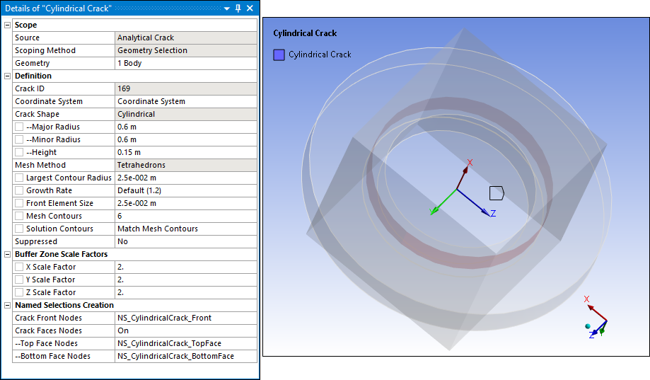 For example, for a Cylindrical Crack object named Cylindrical Crack 4, the default names are NS_CylindricalCrack 4_Front, NS_CylindricalCrack 4_TopFace, and NS_CylindricalCrack 4_BottomFace.