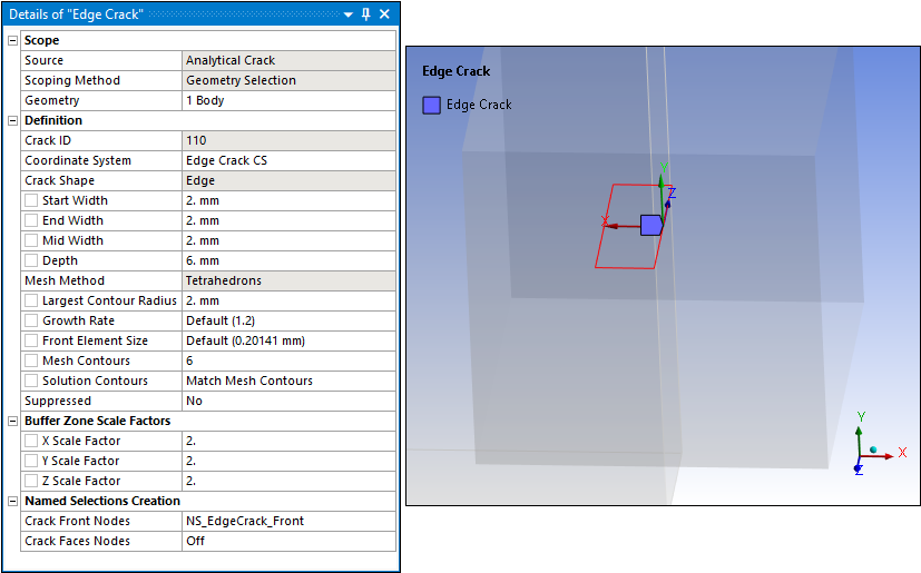 2to50. The default is2. The maximum dimension among the three directions of the crack is multiplied by the corresponding scale factors to create a buffer zone.- Named Selection Creation