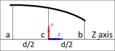 Note the following example that illustrates the Edge Crack geometric inputs, where a = Start Width, b = End Width, c = Mid Width, and d = the Depth of the crack.