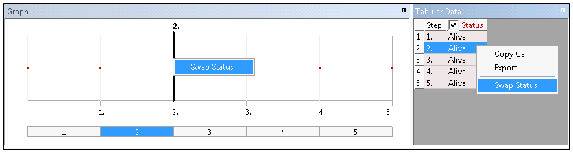 Specify the Status of each load step as desired, or . The default setting for each step is . The Graph and Tabular Data windows each provide the right-click option . This option also changes the Status of a load step.