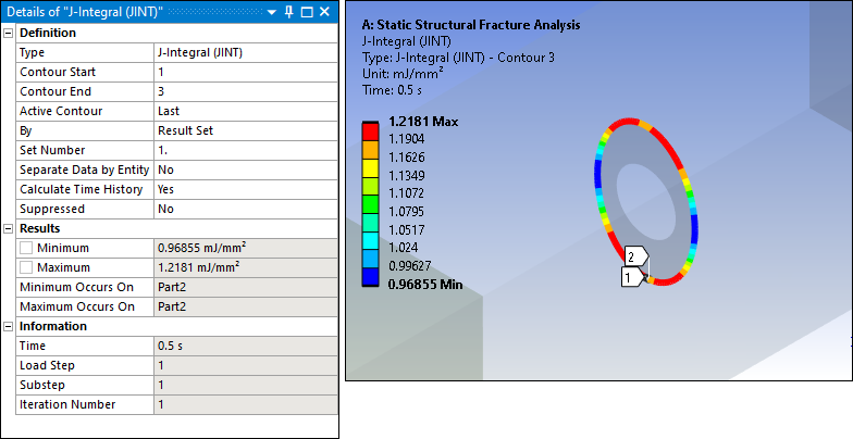 If the Active Contour property is set to , it uses the lowest solution contour value of all the cracks to compute the result.