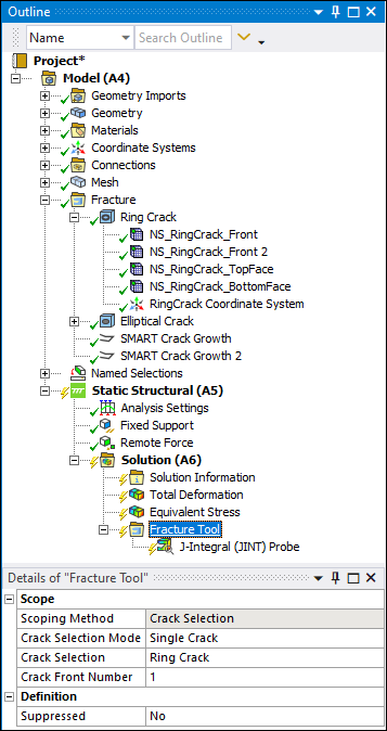 For all other crack types, your analysis must include a defined Fracture folder, a matching mesh (including crack mesh), as well as defined boundary conditions.