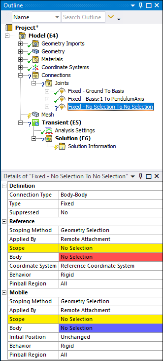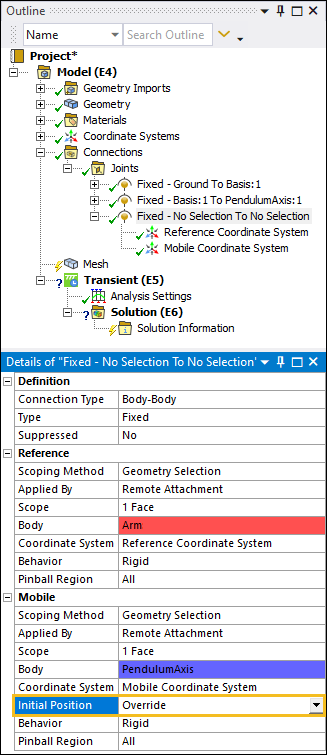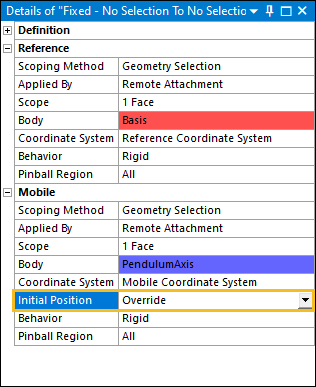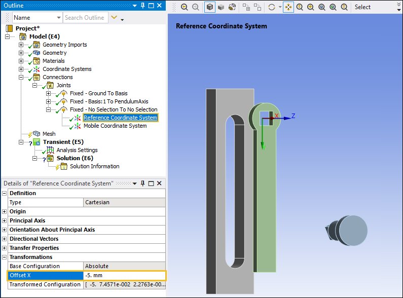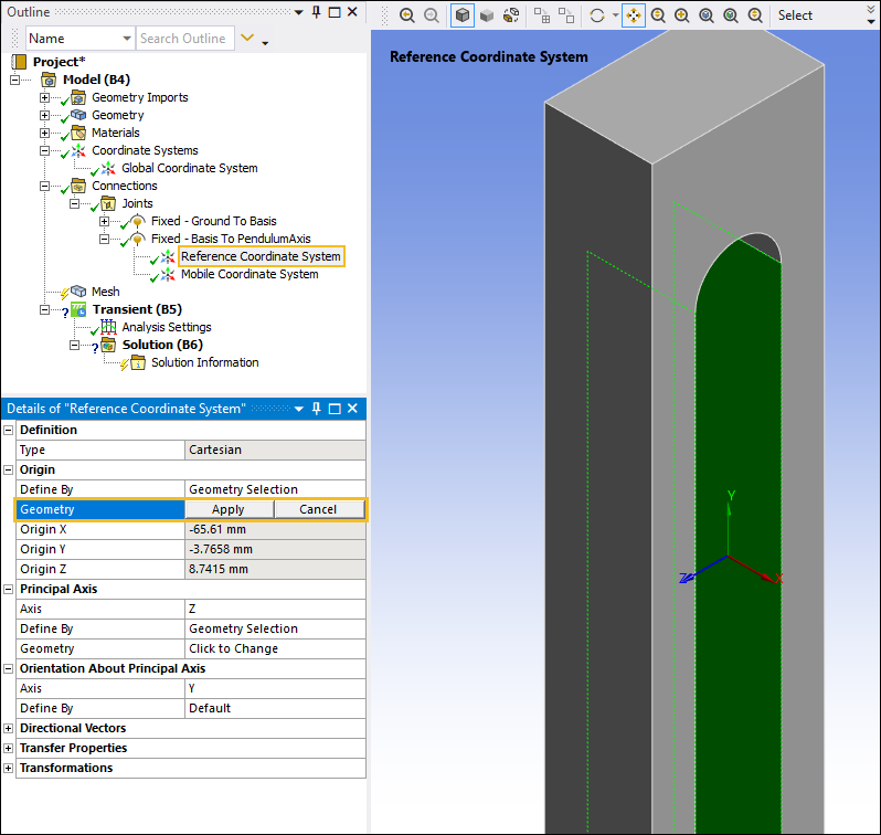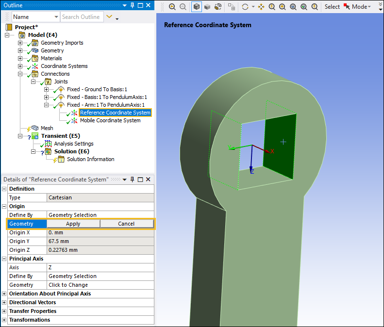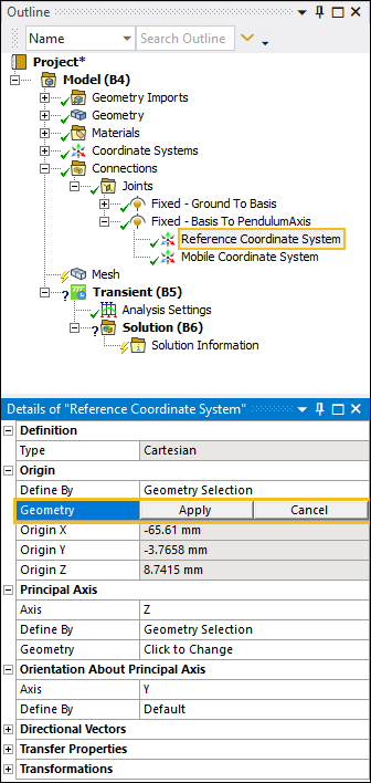Expand the Fixed - Basis To Pendulum Axis joint object, select the Reference Coordinate System object, and then select the field of the Geometry property.