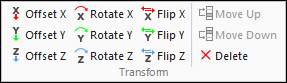 Note: Transformations enable you to manipulate the coordinate systems by entering offsets or rotations in each of the three axes.