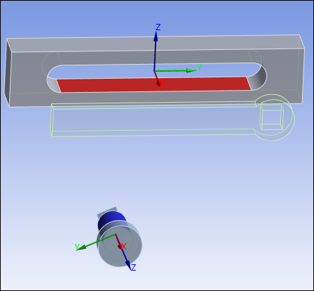 Set the origin of the Reference Coordinate System to the center of the hole in the Arm. Select the Reference Coordinate System object. Select the two side faces from the hole in the Arm, and under the Origin category, select the field of the Geometry property, then click .