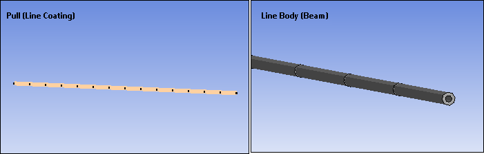 As illustrated, unlike beams, a Line Coating has no visible element expansion (no visible cross section). It displays as a line only.
