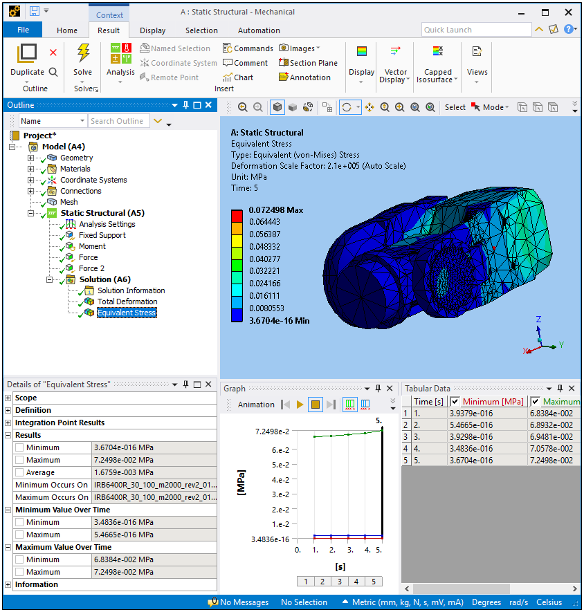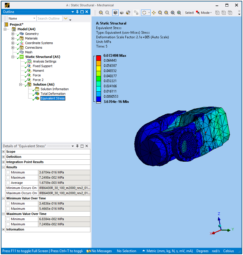 The illustrations below depict the default layout of Mechanical as well as the full screen mode used to view/present your analysis. You activate full screen mode by selecting the Full Screen option from the Layout group on the Home tab. Or, you can use the F11 key when the Geometry window, the tree Outline, or the Details view have focus. The tab option and the F11 key toggle the display on and/or off.