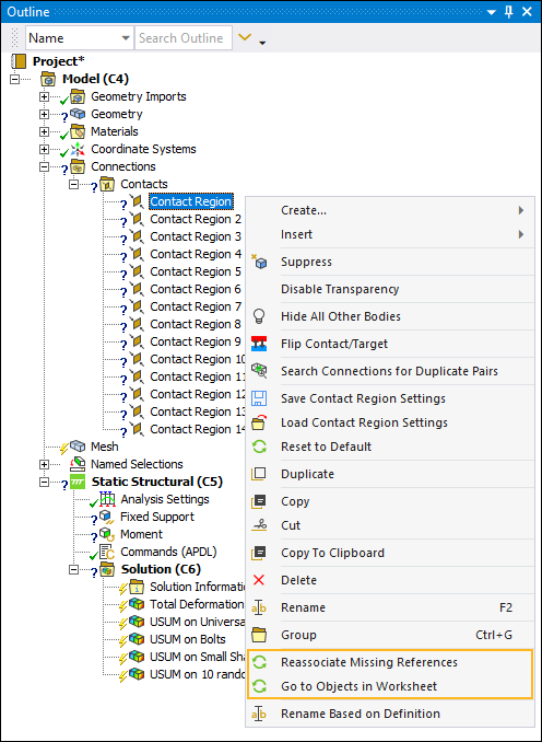 Note: If you use the / options for an unresolved object, the associated data is copied and pasted between sessions and the application will automatically attempt to resolve any scoping.