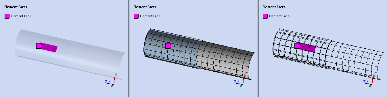 For Element Face-based Named Selections, each selected face is displayed and each face is “filled” as illustrated in the first image shown below. This is different from Element-based selections that only highlight/display edges. When the Show Mesh feature is active, the element faces of a Named Selections may present “bleeding” on the annotation as illustrated in the second image shown below. You can turn on Wireframe mode to accurately display annotations when Show Mesh is selected, as illustrated in the third image.