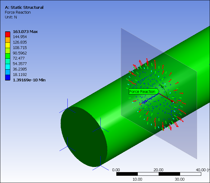 For this probe type, you must explicitly select the bodies to be sliced. You cannot apply this to "all bodies." You then specify for the Extraction detail whether you want to study nodes in front or behind the plane. The probe will only operate on elements cut by the plane (and only nodes on those elements which are on the selected side of the plane). Note that the surface probe will display nodal forces for all nodes that are involved in the reaction calculation.