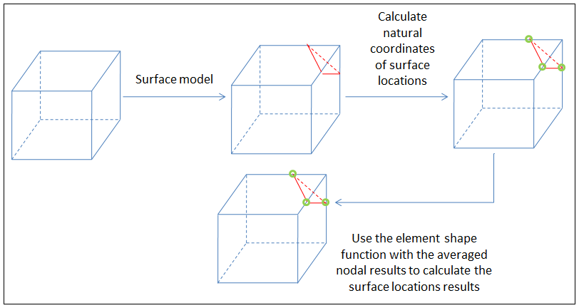 For each remaining (x,y,z) in the surface, Mechanical derives via interpolation the results (like displacements and stresses) from precisely one element. That is, even if an (x,y,z) resides in many elements, Mechanical only fetches the displacements from one element.