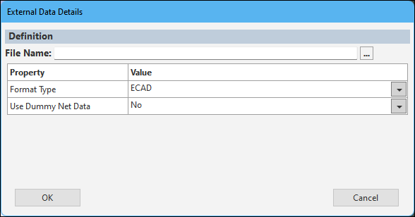 The External Data component enables you to specify the ECAD file for import in Mechanical. The following ECAD File formats are supported for Trace Analysis: