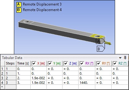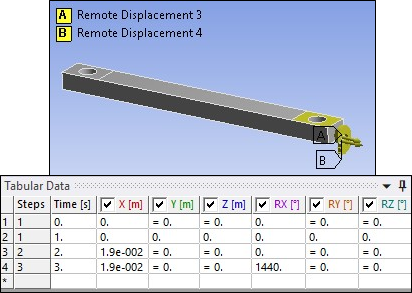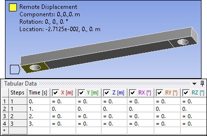 The simulation is carried out in three load steps. The attachment of the test specimen to the test apparatus is simulated by boundary conditions applied to the specimen in the region of the clamps, as described here:
