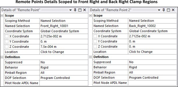 The Remote Points are created with Behavior set to Rigid as shown in the figure below. This ensures that the cross-sections of the holes remain circular after loading.