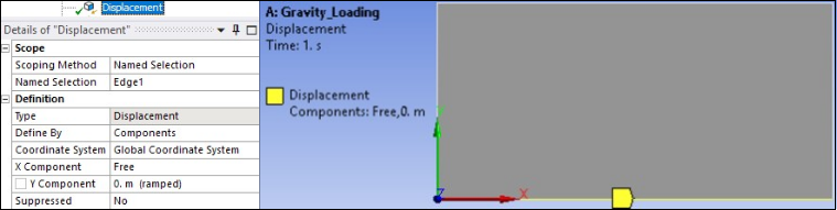The bottom movement of the soil structure is supported via rolling boundary conditions. To accomplish this, the X Component of Displacement is set to Free as seen below.