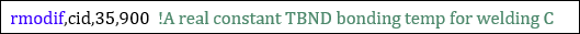 Note: Use the command snippet below to set the bonding temperature since there is no option for setting this in the Mechanical application. For information on adding command snippets in Mechanical, see Commands (APDL).