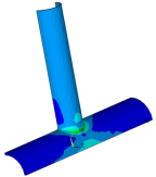 | Demonstrates the linear elastic fracture mechanics of 3-D structures. The problem shows how fracture mechanics can be used to evaluate mixed-mode stress-intensity factors, J-integrals, and T-stresses. Analyses of a simple semicircular surface flaw in a rectangular block and a warped flaw along a tubular joint are discussed. |