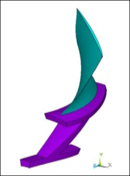 The sector model represents the running condition or hot geometry of the blade. It is already optimized at the running condition under loading. The primary objective of this example problem is to obtain the cold geometry for manufacturing from the given hot geometry using inverse solving.
