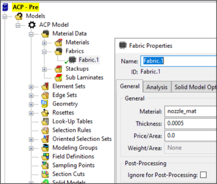 Steps to include an ACP (Pre) component system and define a custom material for the nozzle and ring assembly are described below.