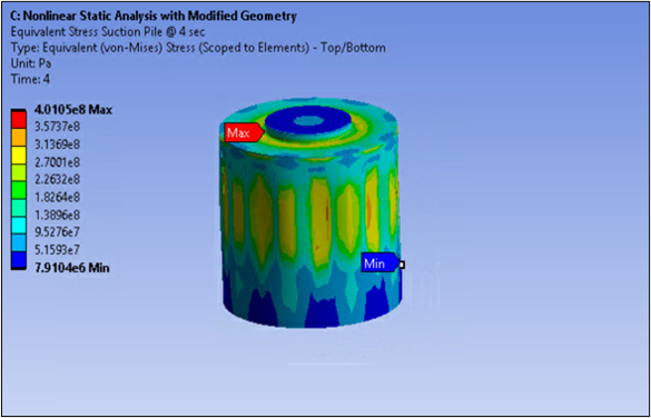 Suction pressure is applied on both the suction-pile skirt and cap. Constant pressure on the suction-pile skirt is assumed. The following figures show the applied suction pressure.