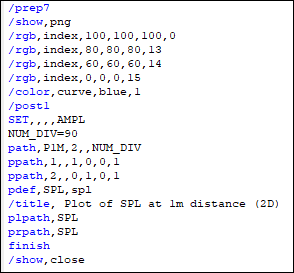 The following command snippet is used to plot Figure 33.17: SPL Plot Along an Arc 1 m from Center: