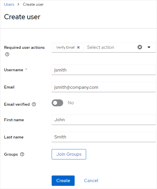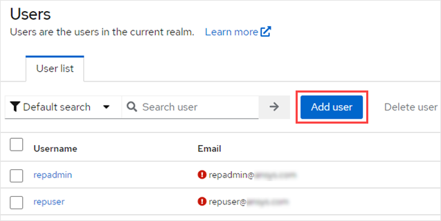 For more information, see Creating users in the Keycloak Server Administration help.