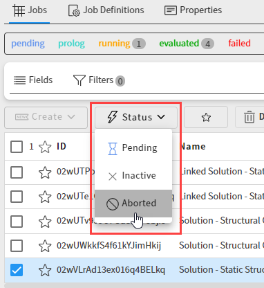 If the job that is displayed is the one that you want to abort, click the status drop-down on the toolbar and select .