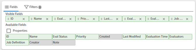 To change the order of fields in the job list, display the Fields pane (if not displayed) and then drag and drop the fields in the Visible Fields area until the desired order is achieved.