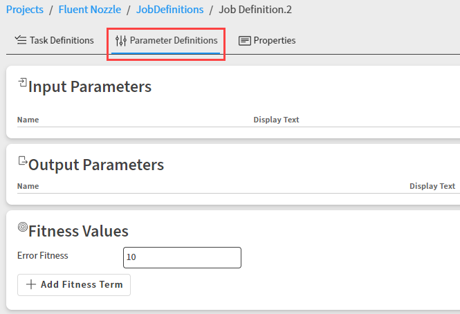 When creating or editing a job definition, you define parameters on the Parameter Definitions tab of the job definition view.