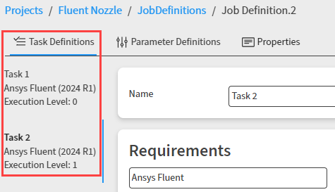 When creating or editing a job definition, you define tasks on the Task Definitions tab of the job definition view.