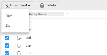 To download multiple files, enable the check boxes of the files to download, then click the Download drop-down and select a download format: