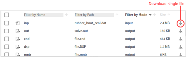 A job's details view displays all files that are associated with the job. These can include input, monitoring, and output files depending on the job's status. You can download all or selected files displayed in a job's details view.