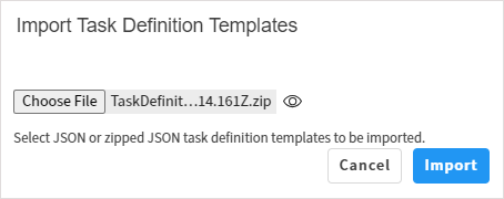 In the Open dialog, select the ZIP file containing the templates or individual JSON templates. Click .