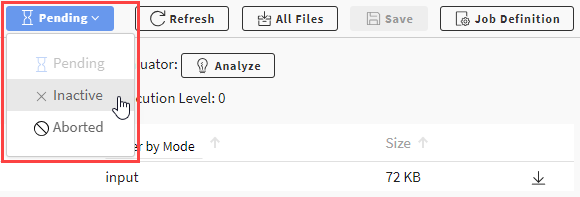 If a job is pending but you do not want a job to be picked up by evaluators, you can change its status to inactive.