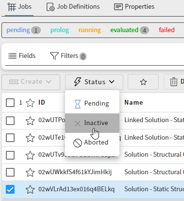 If the job that is displayed is the one that you want to make inactive, click the status drop-down on the toolbar and select .
