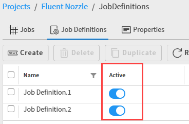 By default, a job definition is active when it is created.