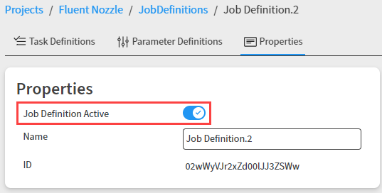 Open a job definition and select the Properties tab. Click the Job Definition Active toggle.
