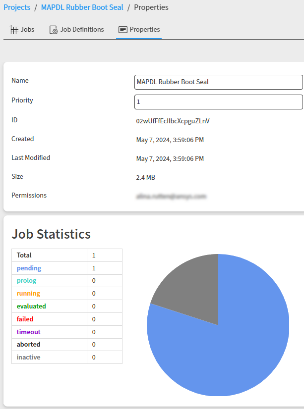To view basic details about a project such as its name, priority, ID, and permissions, or get a snapshot of job statistics, follow the steps below to display the project's properties.