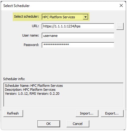 In Electronics Desktop, HPC Platform Services is an available in the Select Scheduler window that can launched via the Simulation ribbon ( button) or by selecting > > .
