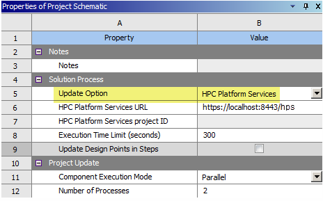 In Workbench, when the Solution Process > Update Option is set to HPC Platform Services in the Project Schematic, design point updates and project updates are sent to Ansys HPC Platform Services.