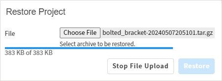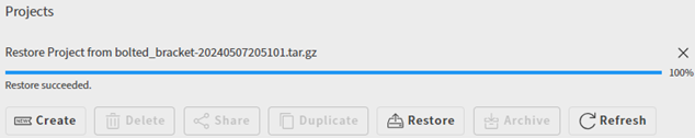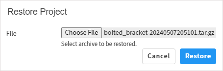 If you archived a project, you can restore the project on any Ansys HPC Platform Services server using the Restore action.