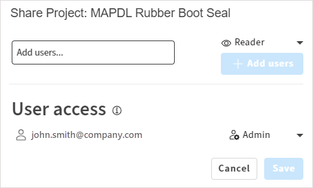 You can share a project with another user Ansys HPC Manager if you are the project creator or you have Admin rights on a project that has been shared with you.