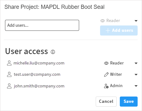 On the Projects page, select the project that you shared and click to open the Share Project dialog.