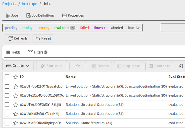 If the project has only one job, the view of that job is displayed. See Viewing a Job's Details.