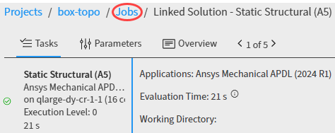 If you are currently viewing a job but want to view all jobs for the project, click Jobs in the breadcrumb trail at the top of the page: