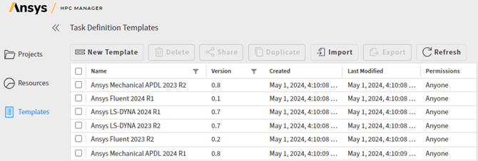 In the Ansys HPC Manager web app, you view, create, import, and manage task definition