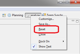 With a right click on a perspective, a menu is opened which allows to reset to the default settings of a perspective.