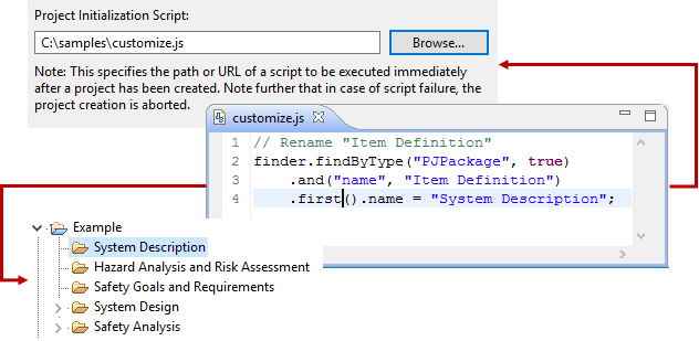 As a first scripting hook, i.e. a hook to extend general tool functionality using existing script functionality, it is now possible to extend the project creation wizard by a script. The script is executed as a post-creation step and may add or alter project elements. This way, it is possible to modify new projects independent on the used template. See Scripting preferences.