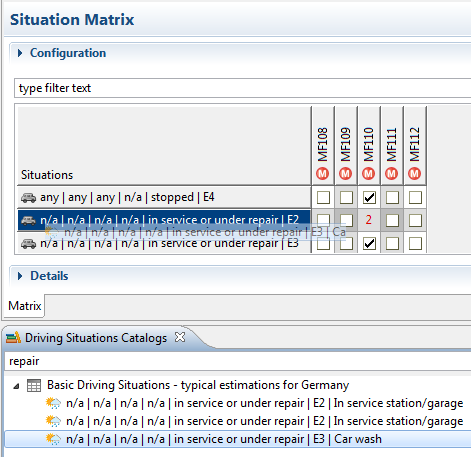 | Situation Matrix | It is now possible to take over alternative situations using drag&drop from the situation catalog to the situation matrix. The situation of all checked entries in a row will be changed and adopted to the new situation. This features allows to quickly exchange situations for a set of existing entries in the HARA.